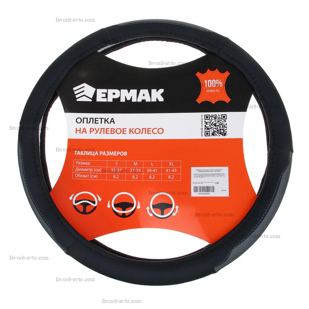 ЕРМАК Оплетка на руль, кожа PU, размер 38 см, перфорированная вставка, черно-серая |