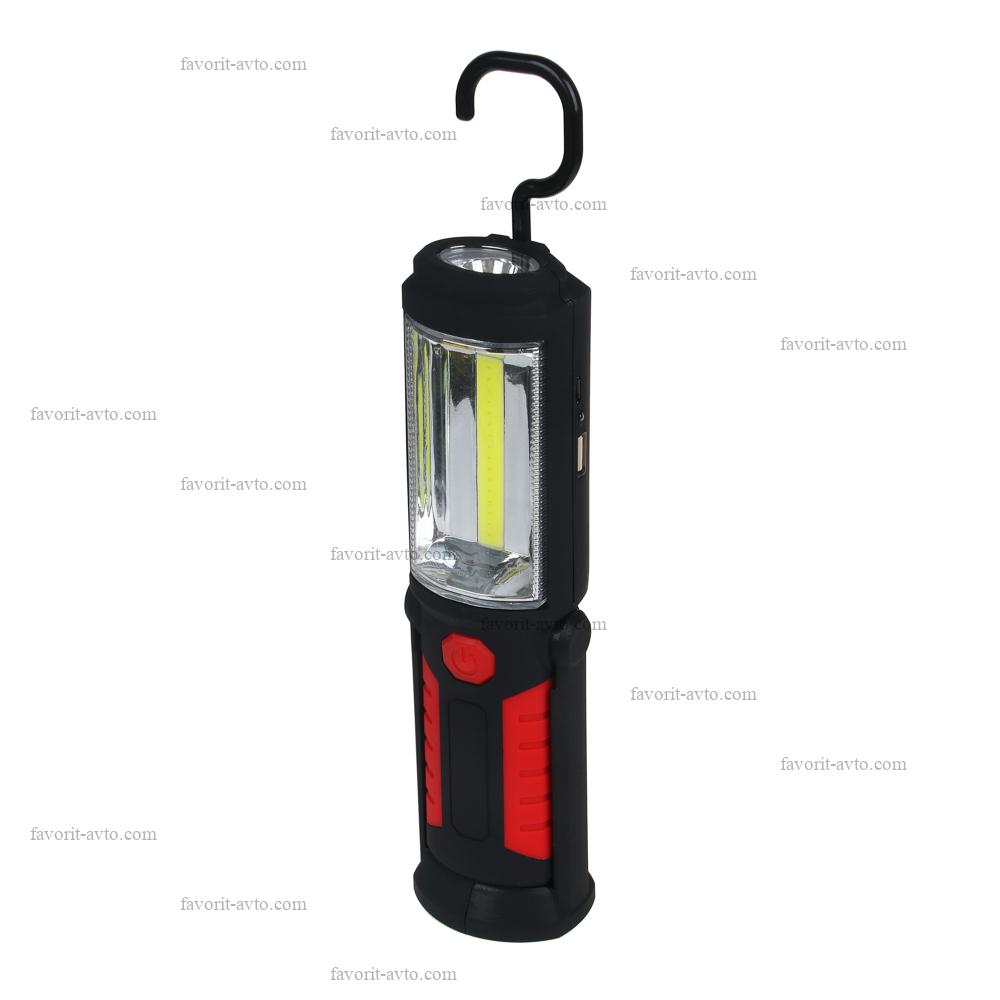 ЕРМАК Фонарь автомобильный светодиодный с магнитом и крюком, 1800мач, USB заряд |