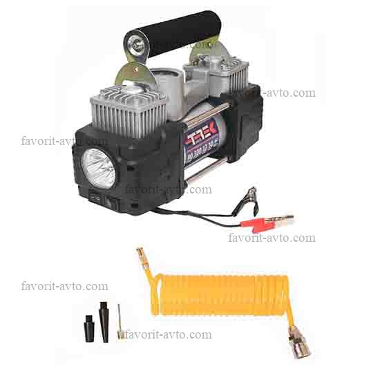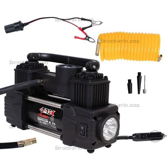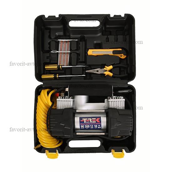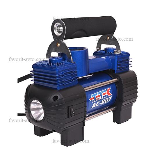 Снижение цены - 32% Компрессор "TREK" 803 двухцилиндровый, 90 л/мин, с фонарем (КЕЙС+шин.инструмент). 1/4 |