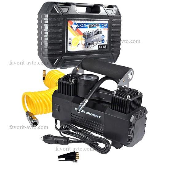 Компрессор "Nova Bright" АК-65 двухпоршневой, до 65 л/мин.,140 PSI, 12В, металл. корпус,в пластик.кейсе ,LED-фонарь, 1/4 |