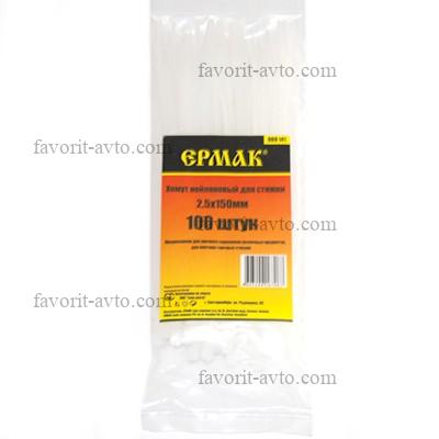 ЕРМАК Хомут нейлоновый для стяжки 2,5х150мм, белый 100шт/уп |