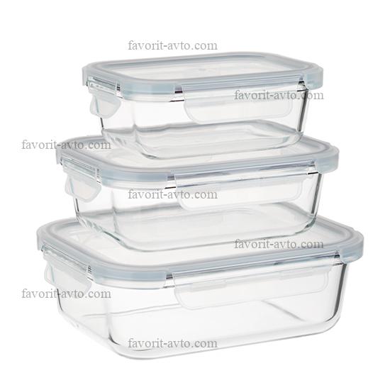 VETTA Набор контейнеров для продуктов на защелках 3пр, 370мл, 600мл, 1000мл, жаропрочное стекло |