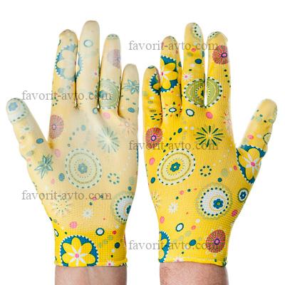 INBLOOM Перчатки садовые с нитриловым полуобливом, полиэстер, 9 размер, 23см, 31гр, цветные 25х15х5. Мин. 10 пар |