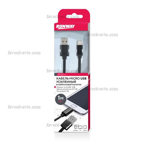 RUNWAY Кабель усиленный в нейлоновой оплетке, micro USB, 1м, черный. RR341m |