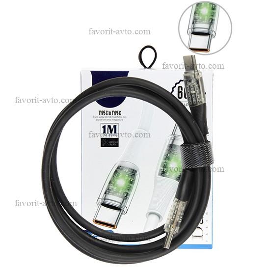 Кабель "Technoking" для зарядки и синхронизации мобильных устройств, Type-C/Type-C, LED подсветка, 1м. 1/25 |