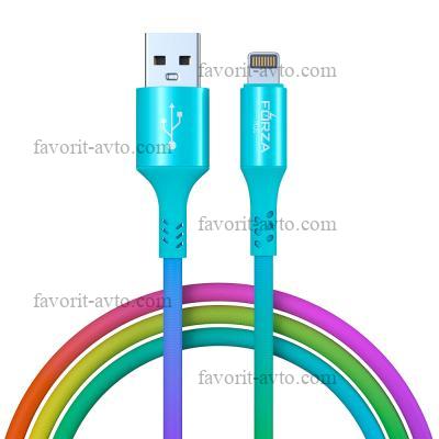 FORZA Кабель для зарядки Конфетти iP, 1м, 1.5А, цветная подсветка, 3 цвета, пакет |