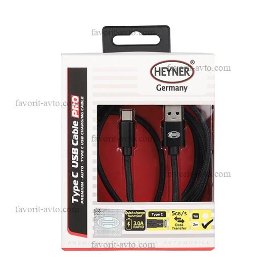 Кабель Премиум Type C USB 3.0, до 5Gb/сек, быстр. зарядка, 2м Черный HEYNER |