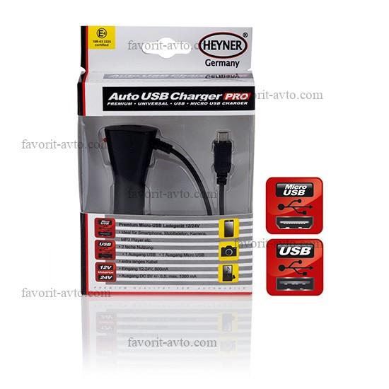 Зарядное устройство от прикуривателя а/м c 2 выходами(USB и Micro-USB)12/24V 5V+удлин.кабель HEYNER. 1/24 |