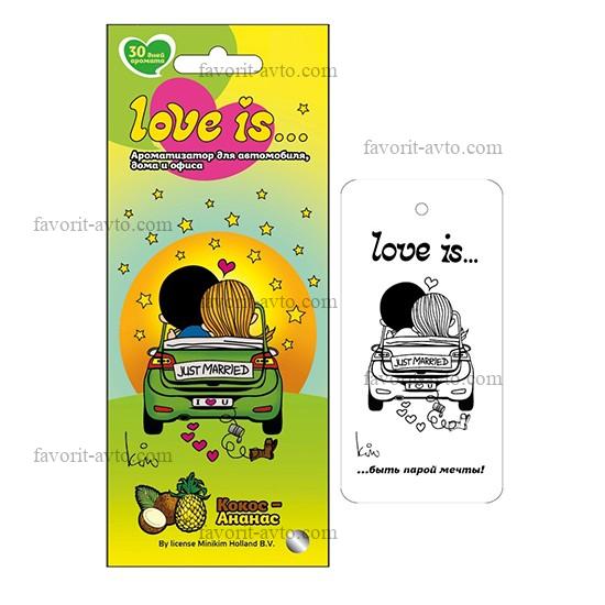Ароматизатор подвесной картон "LOVE IS..." Кокос-Ананас. 1/22. Арт. LI K 0008. |