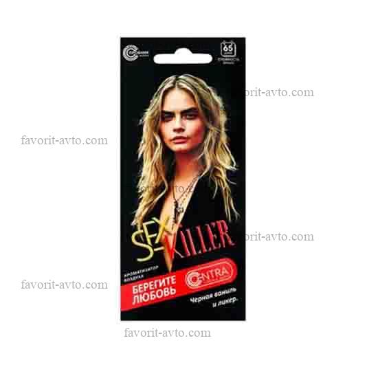 CONTRA К-11 Ароматизатор подвесной картон "SEX KILLER" (Черная ваниль и ликер). |