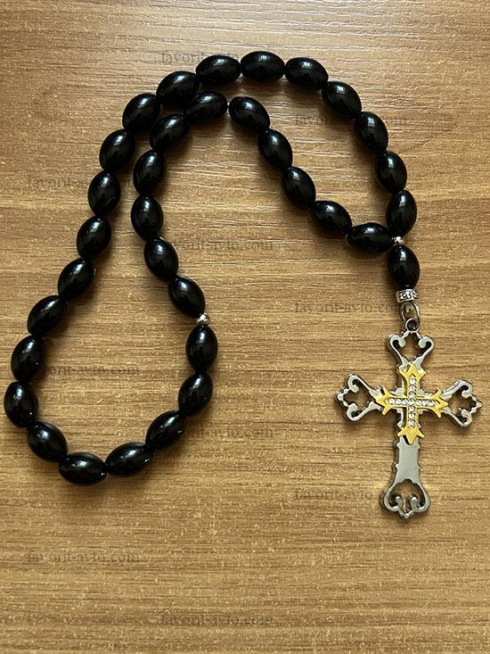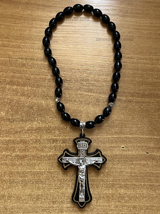 Подвеска на зеркало заднего вида, КРЕСТ крупный (ЧЕРНЫЙ), четки (черные) |