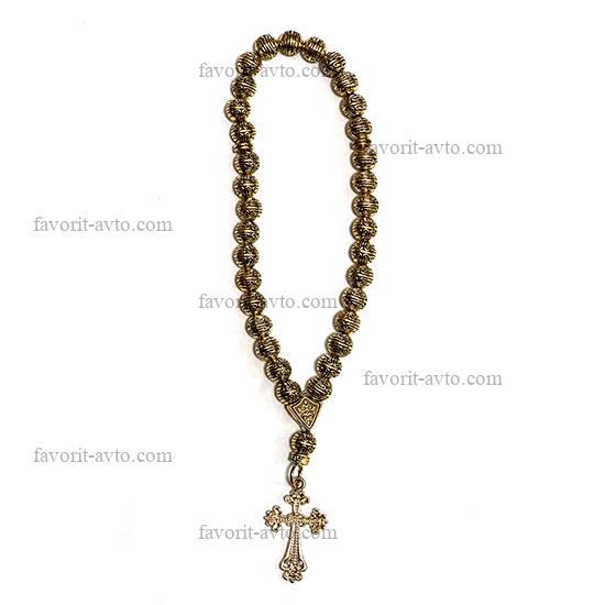 Подвеска на зеркало заднего вида, КРЕСТ (золото) крупный деревянный, четки (черные) |