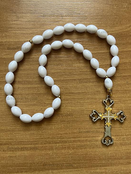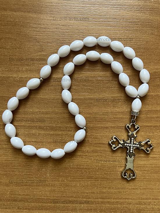 Подвеска на зеркало заднего вида, КРЕСТ крупный (БЕЛЫЙ), четки (белые) |