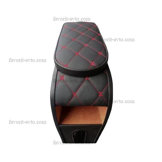 Бар-подлокотник "КЛАССИКА с КОНСОЛЬЮ+2 подстаканника" ВАЗ 01-07 /Кож. зам. /ЧЁРНЫЙ+КРАСНЫЙ РОМБ/, кант (ЧЁРНЫЙ). |