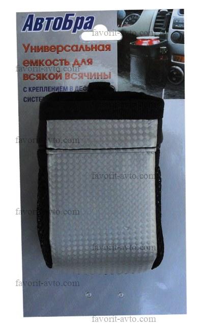 Унив. ёмкость АВТОБРА для всякой всячины /СЕРЫЙ/ из высококачественного КОЖЗАМА. Крепится в воздуховод вентиляции с помощью гибкого элемента. |