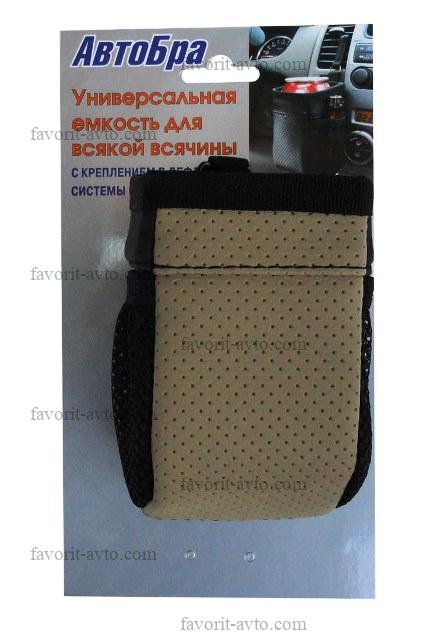 Унив. ёмкость АВТОБРА для всякой всячины /БЕЖЕВЫЙ/ из высококачественного КОЖЗАМА. Крепится в воздуховод вентиляции с помощью гибкого элемента. |