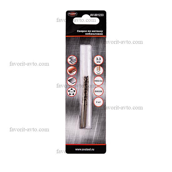 AV Steel Сверло кобальтовое по металлу 3,3мм 2шт HSS-Co 5% (P6M5K5/M35) AV-801233. Комп. 2 шт. 1/50 |