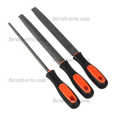 ЕРМАК Набор напильников 200мм 3шт(круглый, полукруглый, плоский),пластиковая двухкомпонентная ручка. 1/10 |