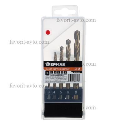 ЕРМАК Набор сверл по металлу 5 пр. П/Б (3-4-5-6-8мм) HSS, нитридтитан.покрытие |