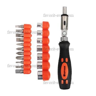 ЕРМАК Отвертка реверсивная с набором бит и головок RRS004 19пр |