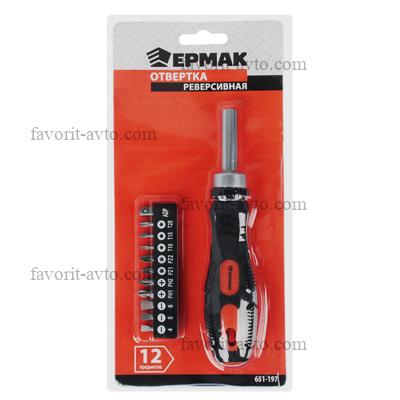 ЕРМАК Отвертка реверсив.,адаптер 1/4,биты:SL4,SL5.5,SL6.5,PH1,PH2,PZ1,PZ2,TORX10,TORX15,TORX20,сталь |