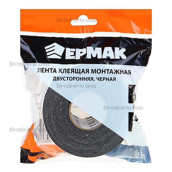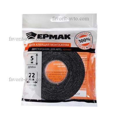 ЕРМАК Лента клеящая монтажная 2-х сторонняя, для АВТО, 22мм x 5м черная. 1/380 |