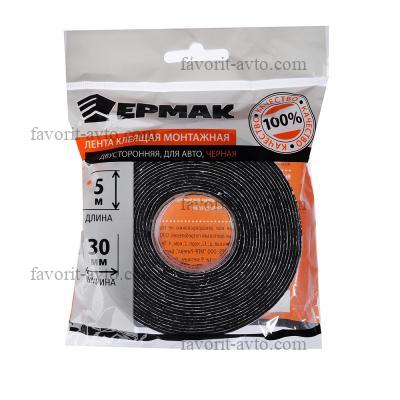 ЕРМАК Лента клеящая монтажная 2-х сторонняя, для АВТО, 30мм x 5м черная. 1/200 |