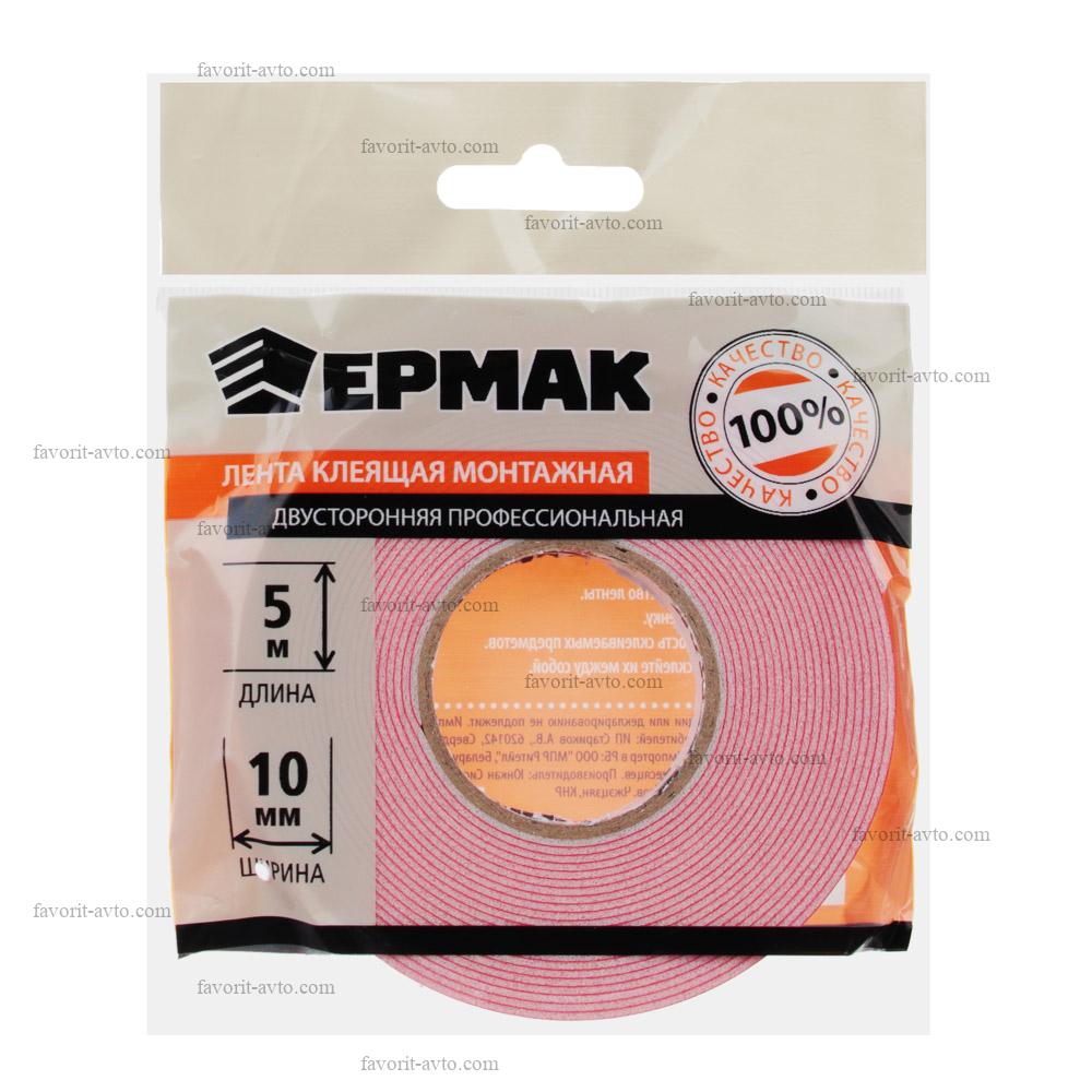 ЕРМАК Лента клеящая монтажная 2-х сторонняя, профессиональная, 10мм x 5м |