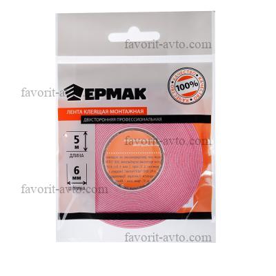 ЕРМАК Лента клеящая монтажная 2-х сторонняя, профессиональная, 6мм x 5м |