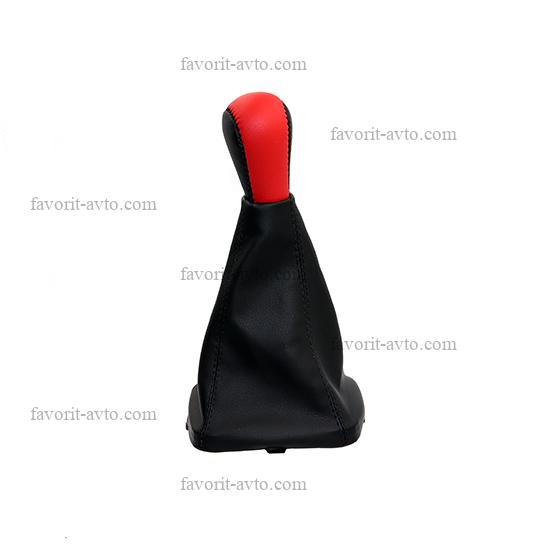 Ручка КПП с чехлом кож-зам КАЛИНА, с рамкой /ЧЁРНАЯ+красная строчка/. 1/70 |