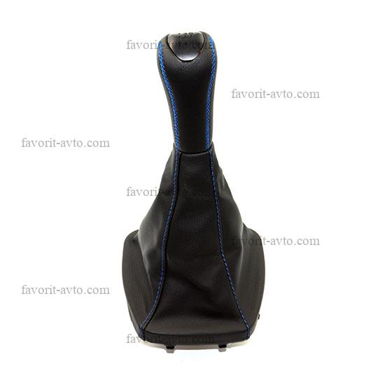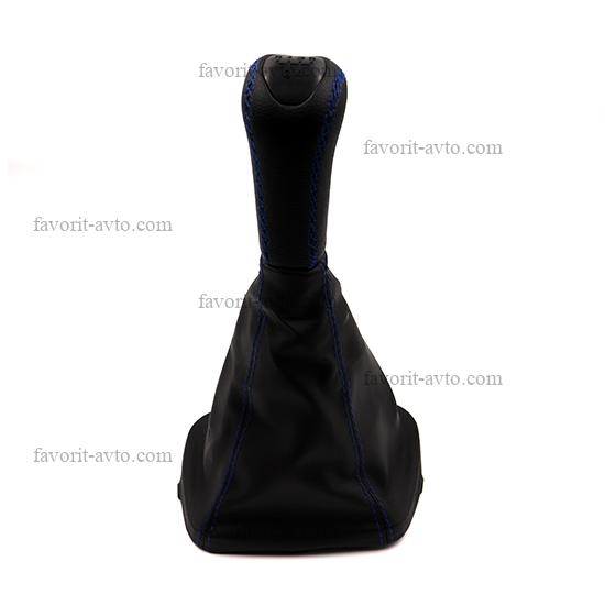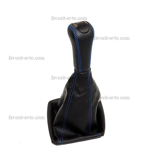 Ручка КПП с чехлом "ЛЮКС" кож-зам ПРИОРА /ЧЁРНЫЙ+синяя нить/. "Фаворит-авто" |