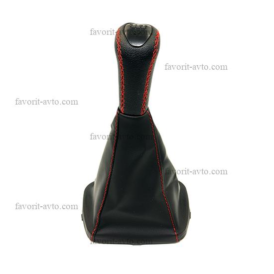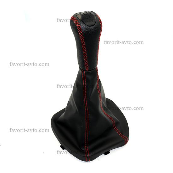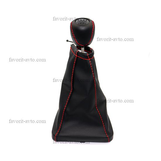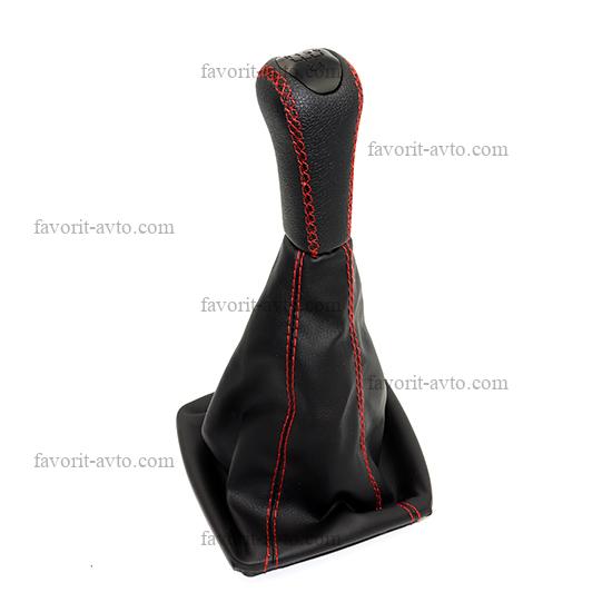 Ручка КПП с чехлом "ЛЮКС" кож-зам ПРИОРА /ЧЁРНЫЙ+красная нить/. "Фаворит-авто" |