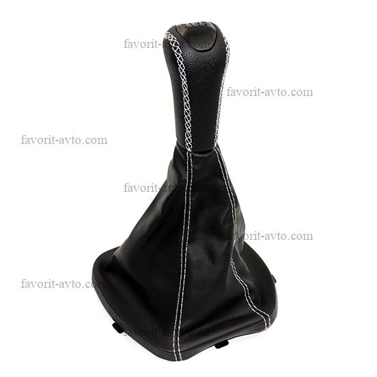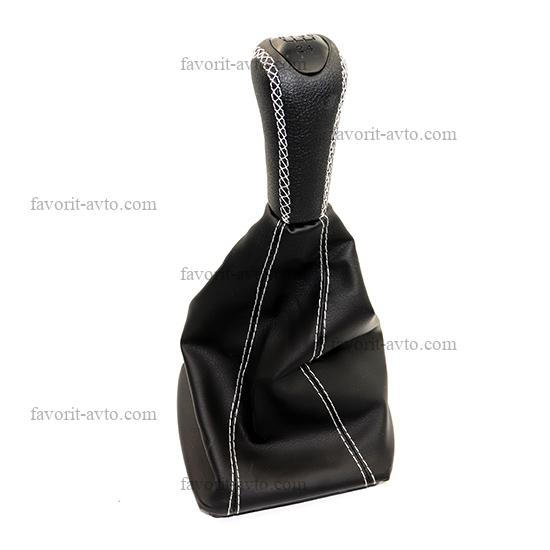 Ручка КПП с чехлом "ЛЮКС" кож-зам ЛАДА ГРАНТА/ КАЛИНА 2 /ЧЁРНЫЙ+белая нить/. "Фаворит-авто" |