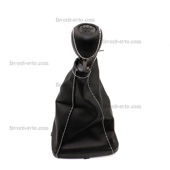 Ручка КПП с чехлом "ЛЮКС" кож-зам ВАЗ 2110 /ЧЁРНЫЙ+белая нить/. "Фаворит-авто" |