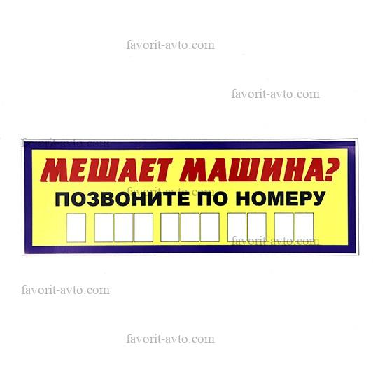 Автовизитка табличка картон "Мешает машина? Позвоните по номеру" 8х22,5 см. Мин.: заказ 10 шт. |