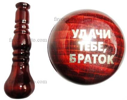 Ручка КПП из нат.дерева высокая №11 " УДАЧИ ТЕБЕ БРАТОК ". Универсальная |