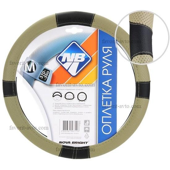 Оплетка рулевого колеса "Nova Bright" (M) экокожа, черная с перфорированными бежевыми вставками, бежевая строчка. 1/25 |