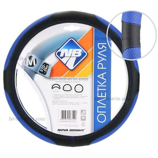 Оплетка рулевого колеса "Nova Bright" (M) экокожа, черная с перфорированными синими вставками, синяя строчка. 1/25 |