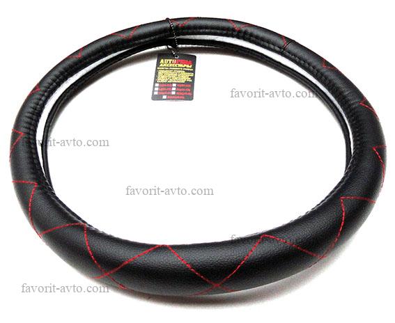Оплетка руля АВТООПЕРА /ЧЁРНЫЙ/ прошитые красной ниткой М 38см.(8002) . 1/50 |
