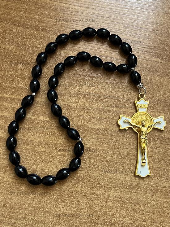 В пути! Подвеска на зеркало заднего вида, КРЕСТ крупный (БЕЛЫЙ), четки (черные) |