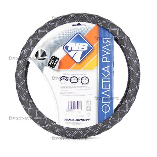 В пути! Оплетка рулевого колеса "Nova Bright" (L) экокожа, черная с серой прострочкой ромбиками. 1/25 |