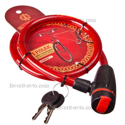 Снижение цены - 41% ЕРМАК Замок велосипедный противоугонный тросовый 12x800мм, металл, пластик, 3 цвета, арт.187. 1/28 |