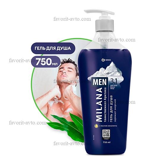 GraSS 149 Гель для душа 3в 1 (для тела,волос.лица ) "Таинственная арктика" с маслом эвкалипта "Milana MEN" (флакон 750мл.). Арт-125460 |