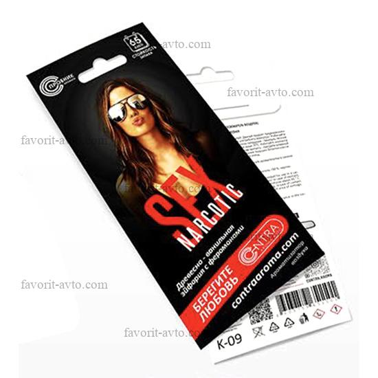 CONTRA К-09 Ароматизатор подвесной картон "SEX NARCOTIC" (Древестно-ванильная эйфория с феромонами). |