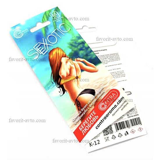 CONTRA К-12 Ароматизатор подвесной картон "SEX EXOTIC" (Сочный дуэт из мандарина и маракуйи). |