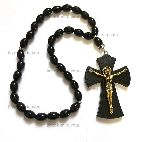 Подвеска на зеркало заднего вида, КРЕСТ крупный (ЧЕРНЫЙ), четки (черные) |