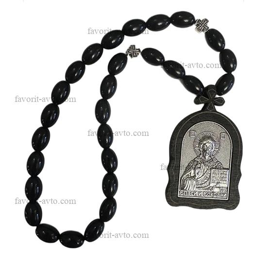Подвеска на зеркало заднего вида, ИКОНА МЕТАЛЛ с кисточкой (Исус Христос), четки (черные) |