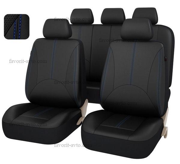 Авточехлы PREMIER PLATINUM VIP, /ЧЁРНЫЙ-синяя нить/, эко кожа, SRS AIRBAG, карман, 5 мм поролон, 6 молний, 11 предметов, 1/5, PIV1010 |