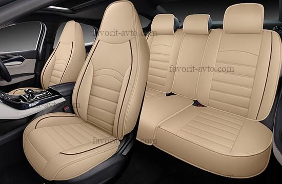 Авточехлы 5D SIRIUS AUTOPREMIER, комплект 4 шт., бежевый, экокожа, закрытая спинка, карман, литой подголовник, 1/6, SIR1600 |