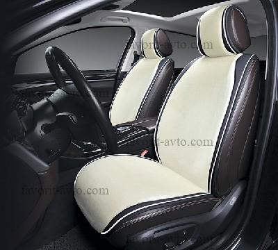 Накидка меховая "CROWN" AUTOPREMIER, комплект передний 2 шт., белый, искусственный мех, боковая отделка экокожей, 1/4, SV200 |